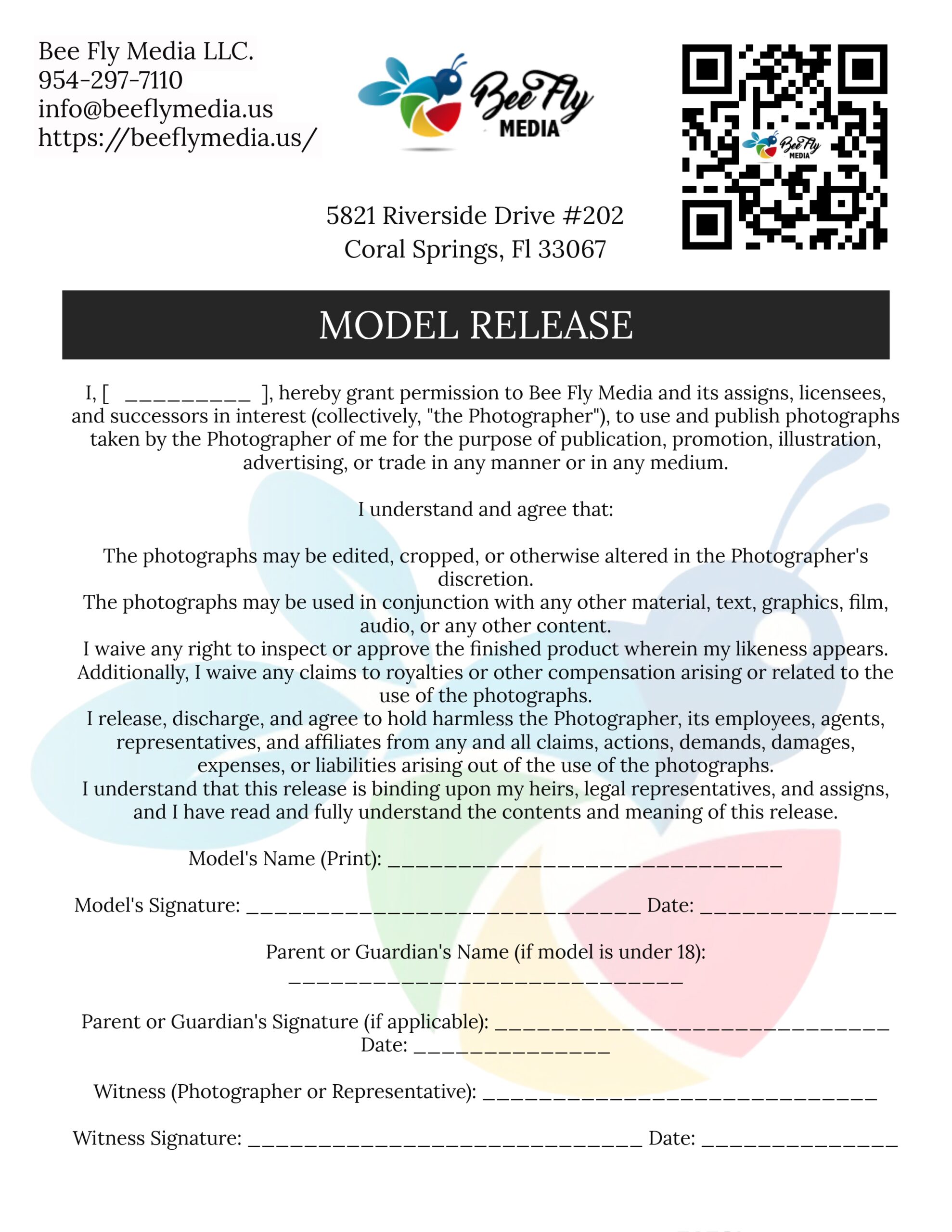- A client needs to sign a model release form to grant permission for the use of their likeness (image or video). This protects both parties legally and ensures clarity on how the images or videos will be used.